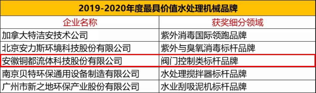 2019-2020年度“環(huán)保裝備品牌評(píng)選”結(jié)合市場(chǎng)業(yè)績(jī)、產(chǎn)品質(zhì)量、品牌知名度、商業(yè)模式創(chuàng)新四大維度進(jìn)行綜合評(píng)定,終甄選出“2019-2020年度價(jià)值環(huán)保裝備品牌”上榜企業(yè)。銅都流體獲此殊榮。