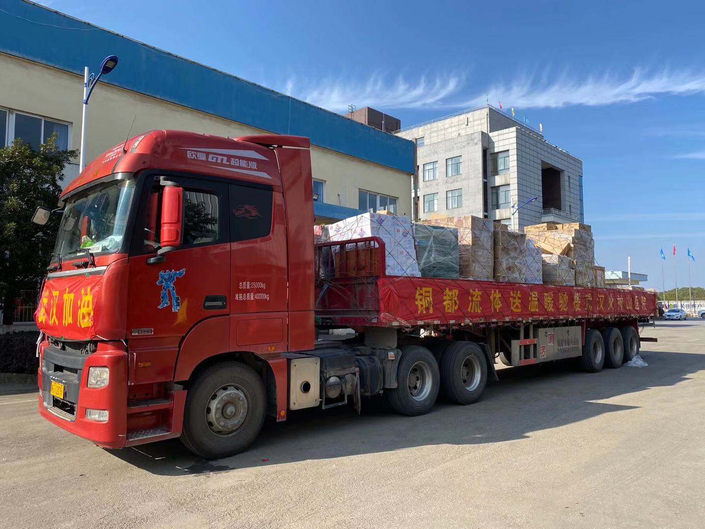 1月31日下午,滿載銅都流體全體員工的愛心和支持的捐贈物資,從銅陵出發(fā)運(yùn)往武漢,今晚即可抵達(dá)武漢火神山醫(yī)院。