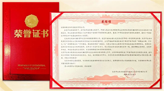 收到北京自來水集團(tuán)來信感謝