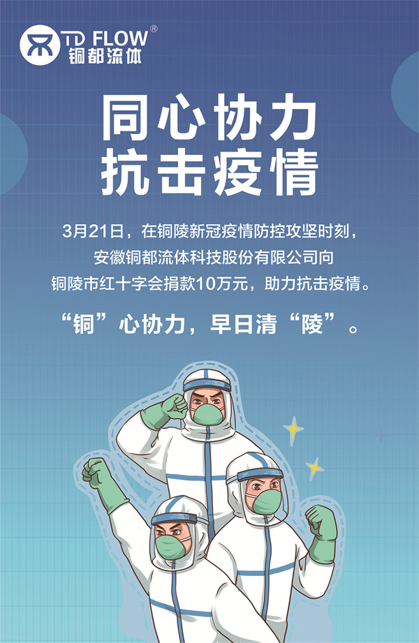 3月21日,在銅陵新冠疫情防控攻堅(jiān)時(shí)刻,安徽銅都流體科技股份有限公司向銅陵市紅十字會(huì)捐款10萬(wàn)元,助力抗擊疫情。